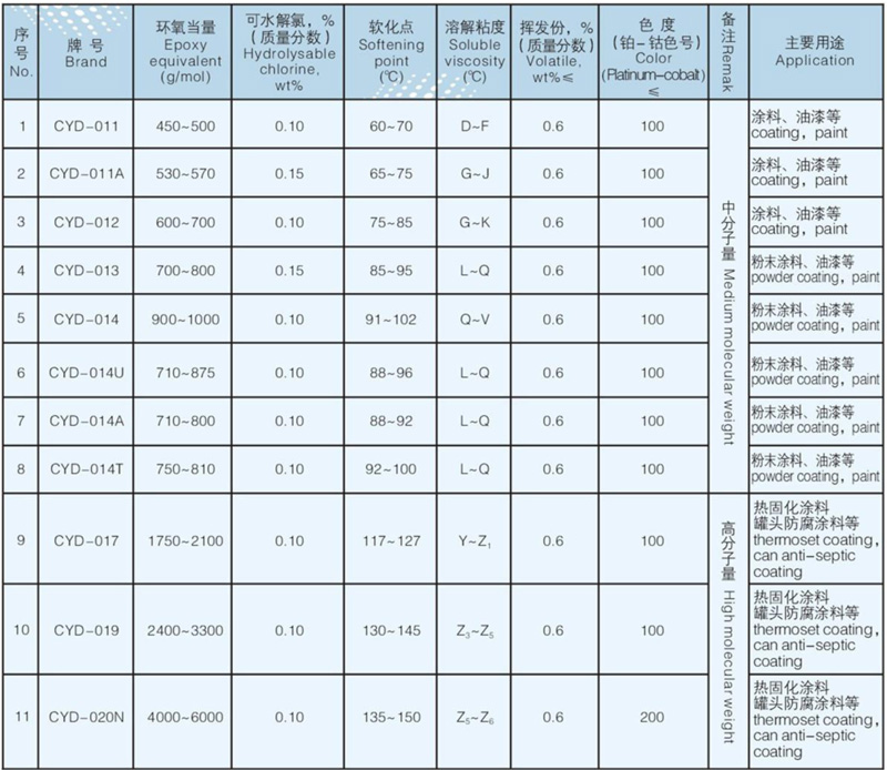 雙酚A型中、高分子量固體環(huán)氧樹脂 Home位置:首頁(yè) >> 產(chǎn)品中心 >> 環(huán)氧樹脂產(chǎn)品