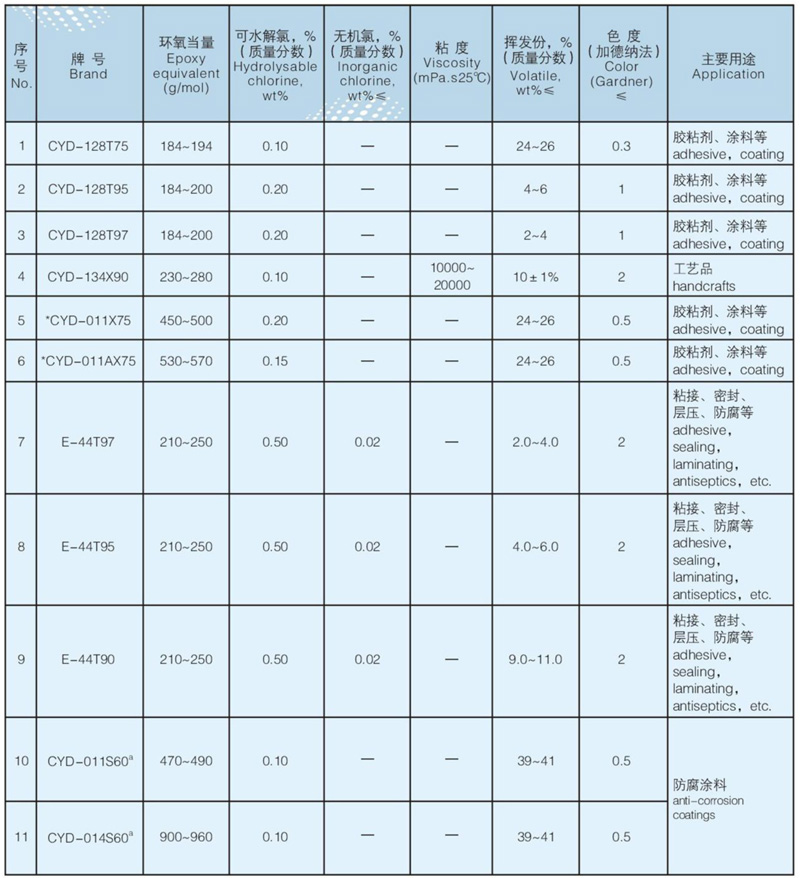 注:產(chǎn)品的環(huán)氧當量為固體樹脂的環(huán)氧當量。