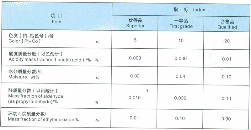 Epoxy propane and propylene oxide, is a colorless, transparent, inflammable, explosive, non-toxic, easy to moisture absorption, ethers smell liquid, live learning activity is extremely strong, can be used as solvent for cellulose nitrate, the synthesis of vinyl chloride, vinyl acetate, such as chloroprene, can also be used for production of polyether, propylene glycol, surface active agent, foaming agent, demulsifier, mineral processing reagents, etc.