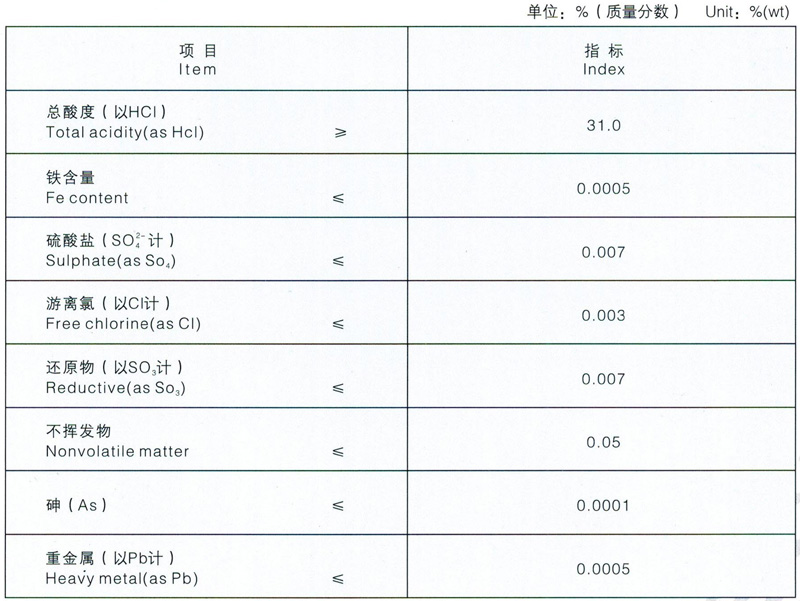 氯氣和氫氣在石墨合成爐內(nèi)進(jìn)行燃燒反應(yīng)生成氯化氫氣體,然后用純水吸收形成鹽酸。它具有刺激性臭味,是一種可揮發(fā)性強酸,有毒、有腐蝕性,容易和許多金屬反應(yīng),可與堿金屬和堿土金屬反應(yīng),也可與許多金屬氧化物以及多種金屬鹽起反應(yīng)。在冶金、紡織、皮革、醫(yī)藥、食品等行業(yè)有著廣泛的用途。由于在生產(chǎn)中采用石墨合成爐和用純水吸收氯化氫氣體,所產(chǎn)生的鹽酸中含雜質(zhì)極少,呈無色透明,因此,更適應(yīng)作為食品添加劑。