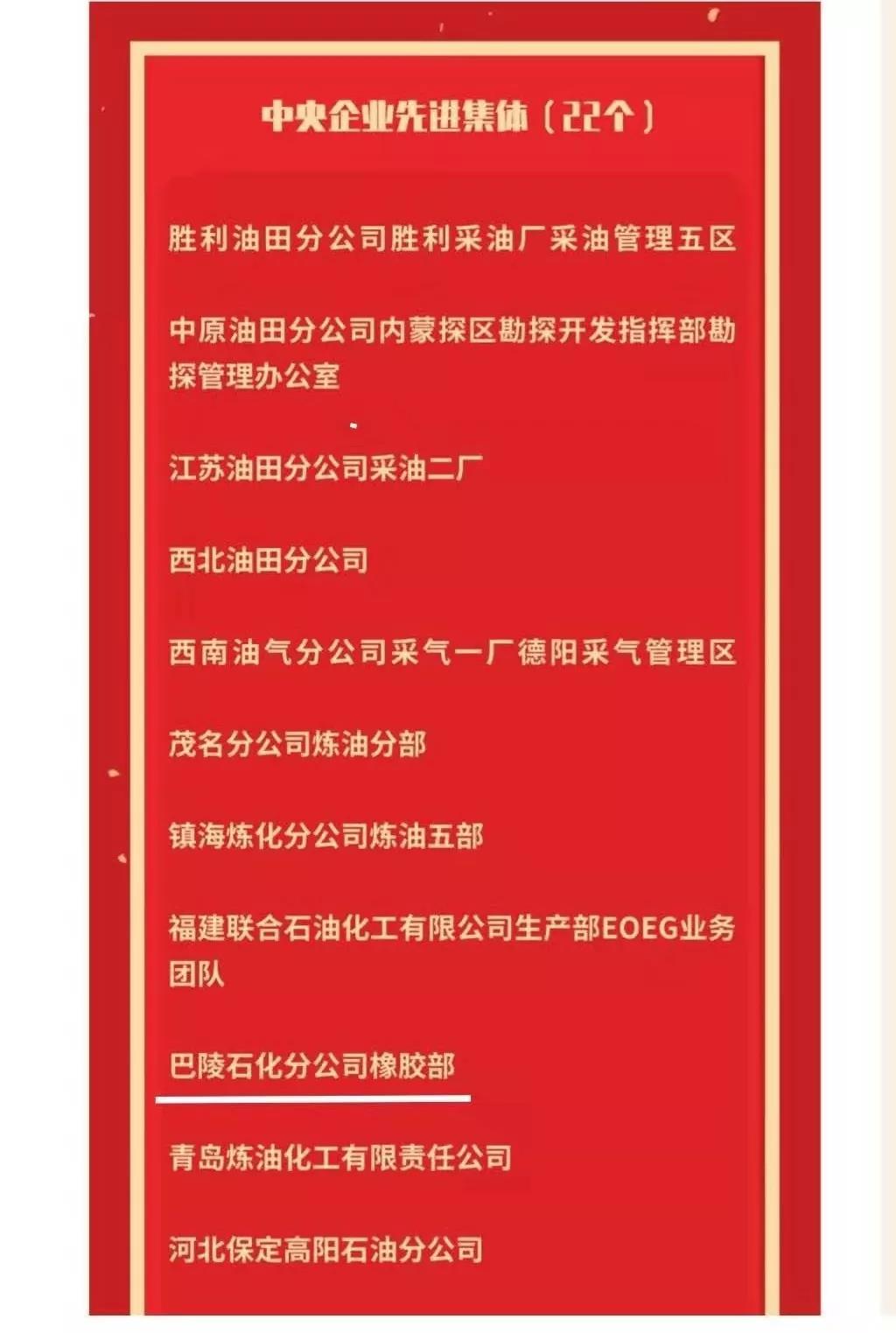 在本次表彰大會上,巴陵石化橡膠部被授予“中央企業(yè)先進(jìn)集體”稱號。據(jù)悉,這是巴陵石化首次獲此殊榮。